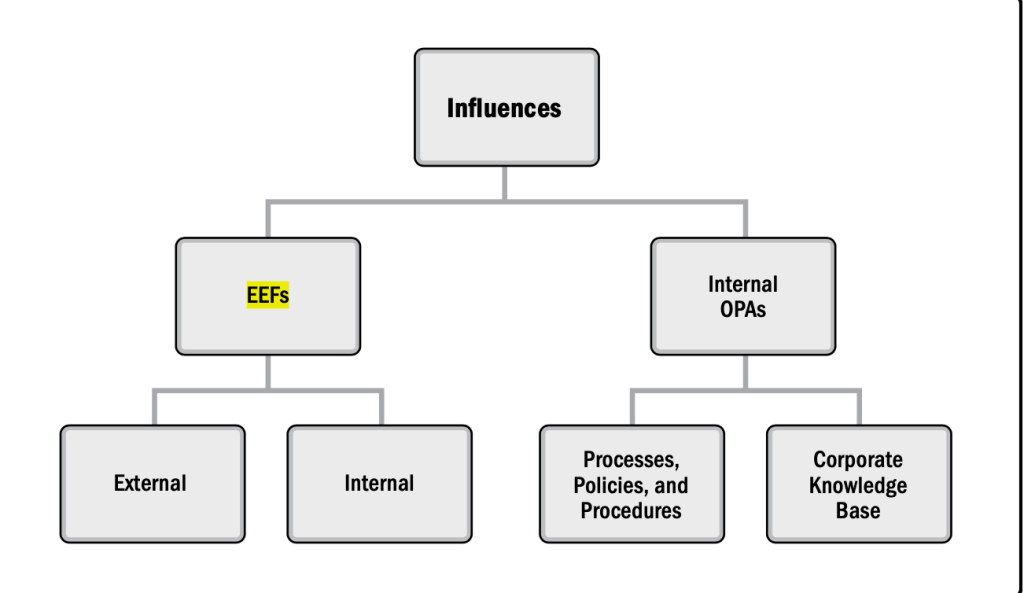 Through the years of working with clients, I have learned that there are a lot of factors that affect a project manager’s ability to be a good project manager. For example, every company has differing “influences” that play a role in the environment in which the project management exists. These influences can have a favorable or unfavorable impact on a particular project or the project management role itself. These sources of influence are known as Enterprise Environmental Factors (EEFs) and Organizational Process Assets (OPAs).