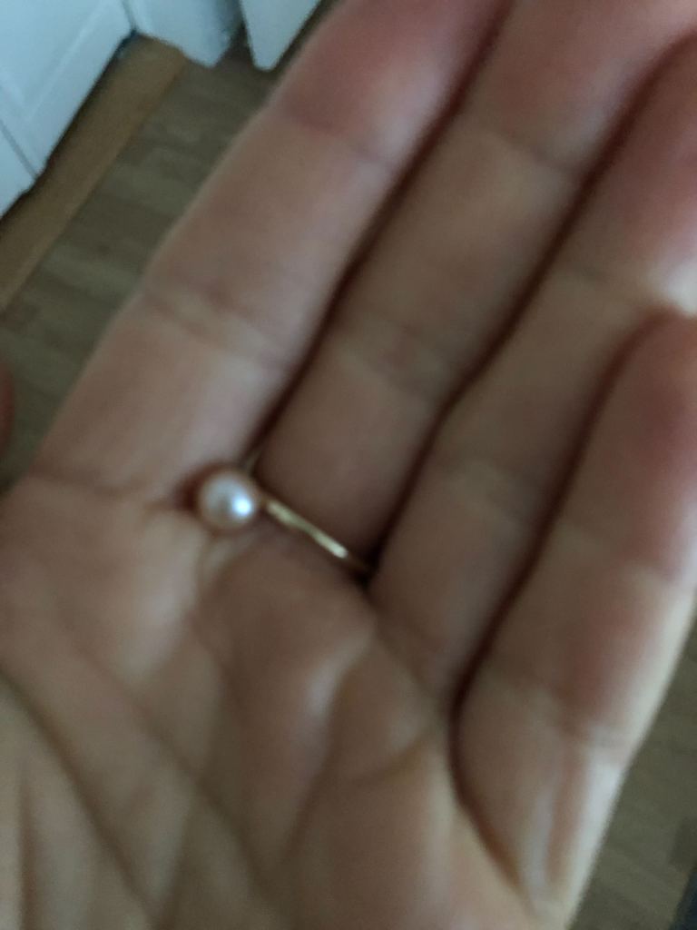I glanced down and realized the light pink pearl on the ring that I always wear on my left hand was missing…
